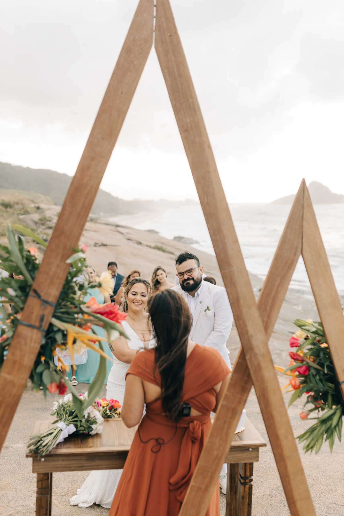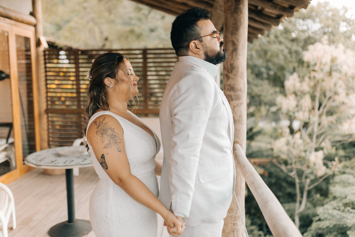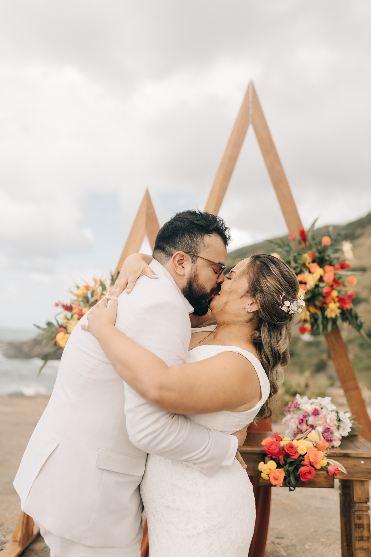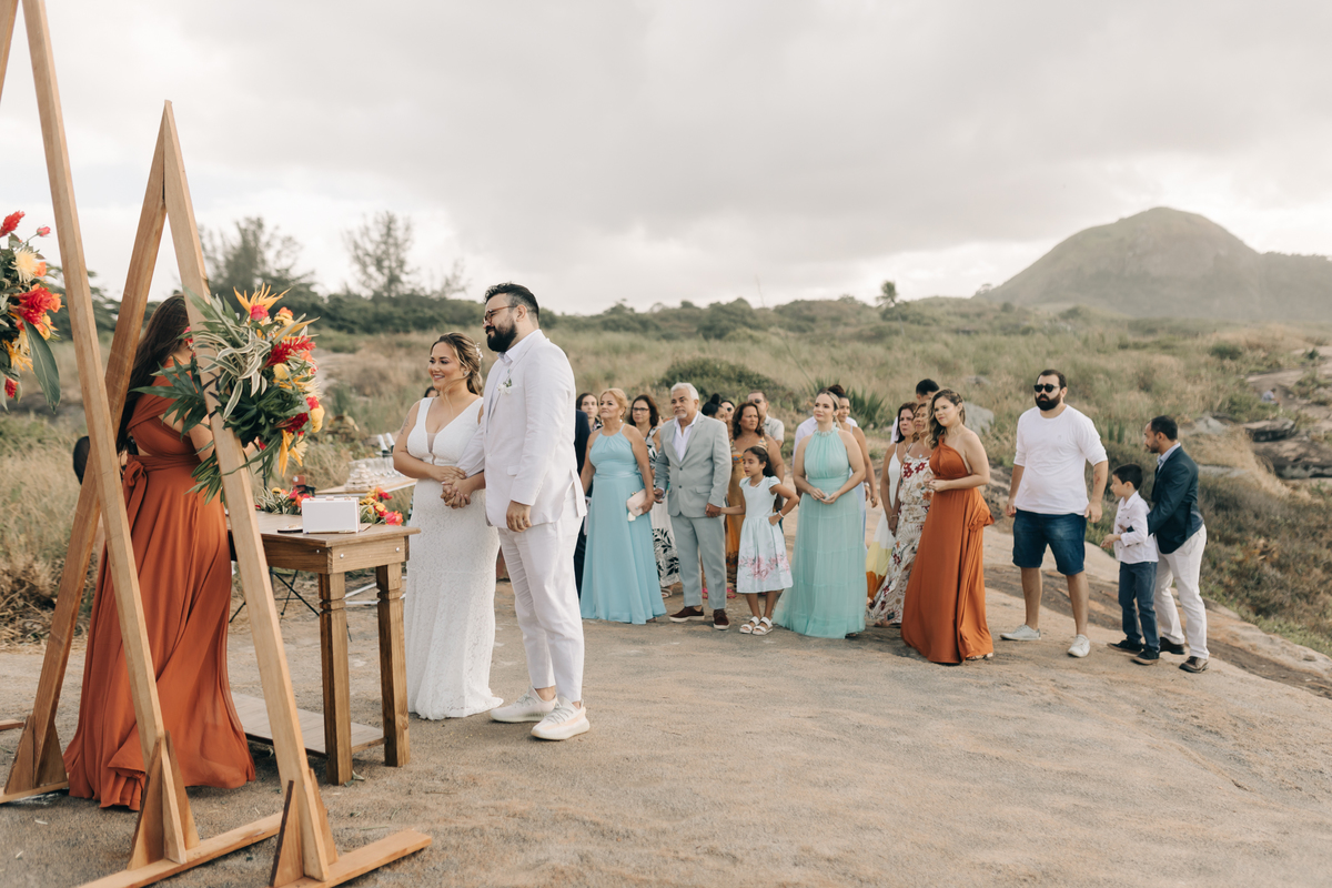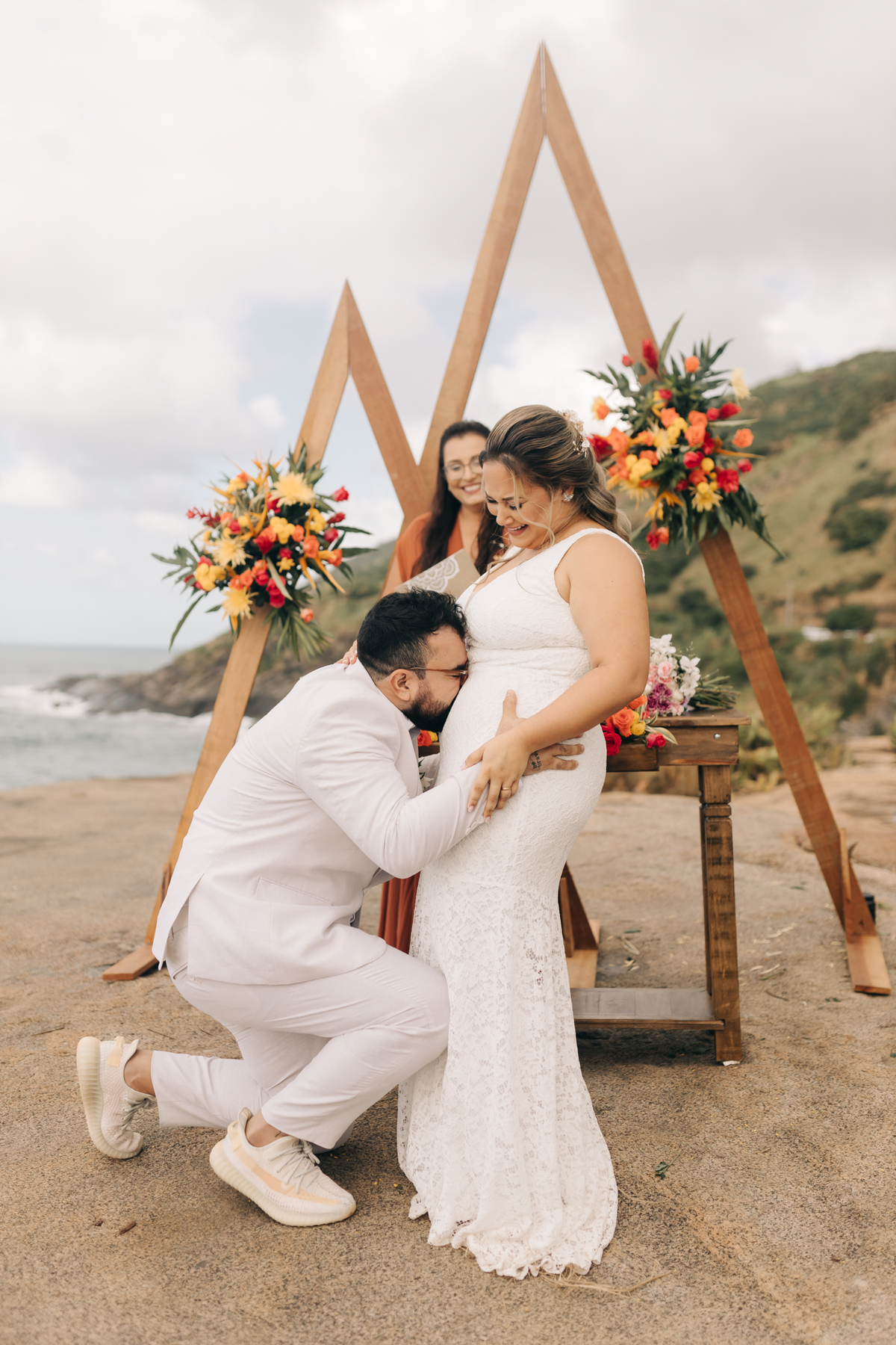 Camila e Vinicius mudaram completamente seus planos. E quando eu digo isso, não estou falando em pequenos ajustes, mas é uma mudança que vai desde o ano e até as surpresas que estariam contempladas nesse dia. Se casariam no próximo ano, em um local no campo, em uma festa maior e para muito mais pessoas. Resolveram criar sua “lista vip”, num casamento ao nascer do sol e na beira da praia. Mas tinha que ser assim… tanto que 6 dias antes da cerimônia, descobriram um convidado especial: Camila e Vinicius estão grávidos e fizeram a revelação no seu próprio casamento!
