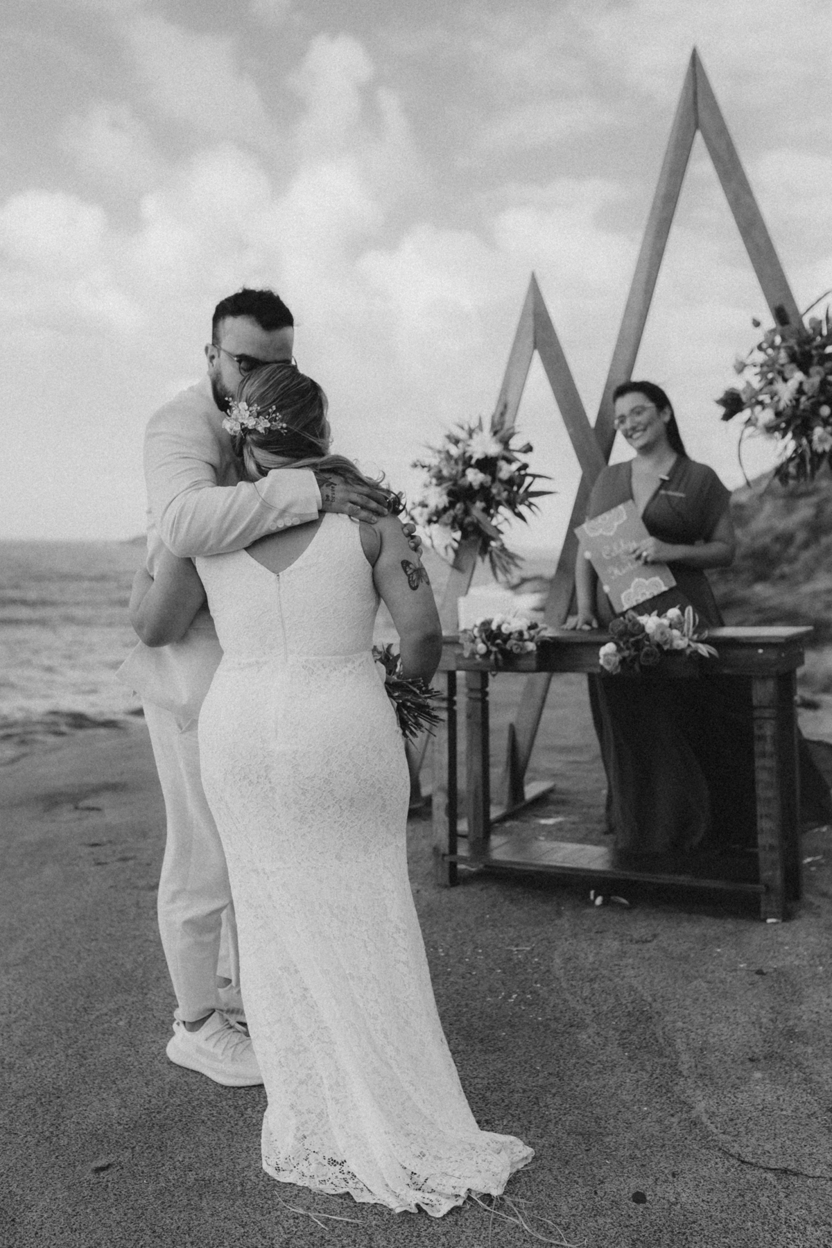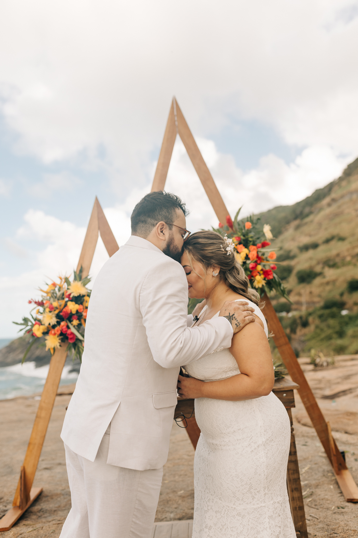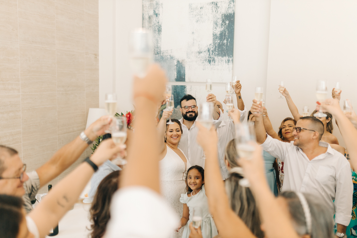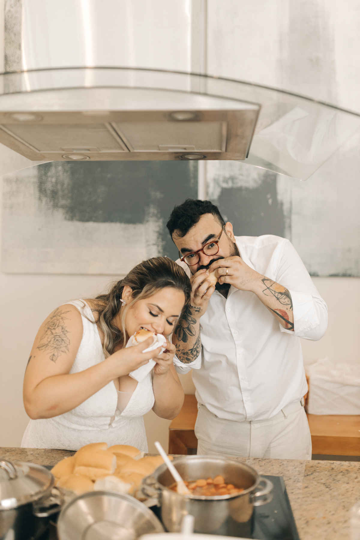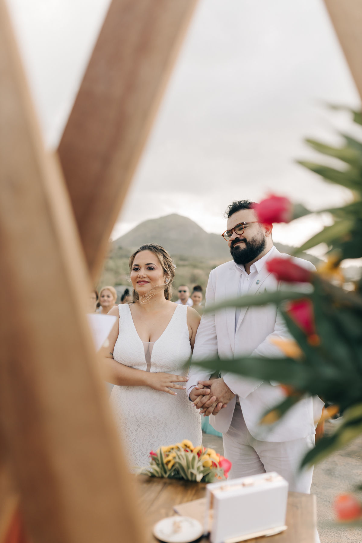 Camila e Vinicius mudaram completamente seus planos. E quando eu digo isso, não estou falando em pequenos ajustes, mas é uma mudança que vai desde o ano e até as surpresas que estariam contempladas nesse dia. Se casariam no próximo ano, em um local no campo, em uma festa maior e para muito mais pessoas. Resolveram criar sua “lista vip”, num casamento ao nascer do sol e na beira da praia. Mas tinha que ser assim… tanto que 6 dias antes da cerimônia, descobriram um convidado especial: Camila e Vinicius estão grávidos e fizeram a revelação no seu próprio casamento!